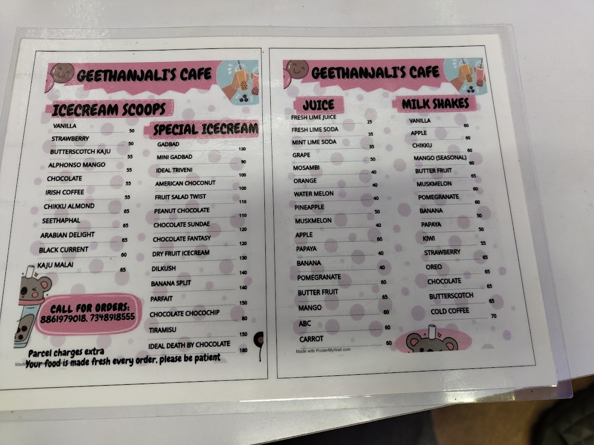 Whether it's a casual outing or a sweet escape after a long day, Geethanjali's Cafe is the perfect spot to relish delicious food in a relaxed environment. With zero wait time and a cozy ambiance, it truly stands out as an inviting retreat in the bustling city. So why wait? Pay a visit to Geethanjali's Cafe and immerse yourself in a delightful experience that’s as sweet as their ice creams!
